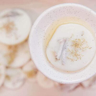 PINK PEONY & GARDENIA – Vibrant citron, clove, peach and plum leading to a floral bouquet of orange blossom, jasmine, ylang, lily, geranium, peony rose and gardenia sit on a rich bed of patchouli, sandalwood, cedarwood, tonka, amber, caramel and musks.