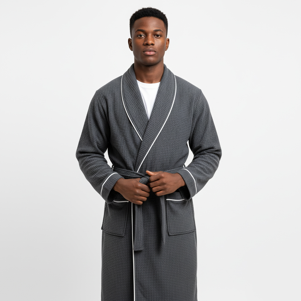 Indulge in the ultimate luxury with our shawl collar bathrobe, featuring a charming pineapple pattern, premium cotton fabric, and elegant piping. Designed for lounging, post-shower comfort, spa relaxation, travel, or even as a thoughtful gift for men and women, this bathrobe effortlessly combines style, absorbency, and versatility. Perfect for spa-goers, hotel clients, and everyday luxury seekers in Lagos, Nigeria.