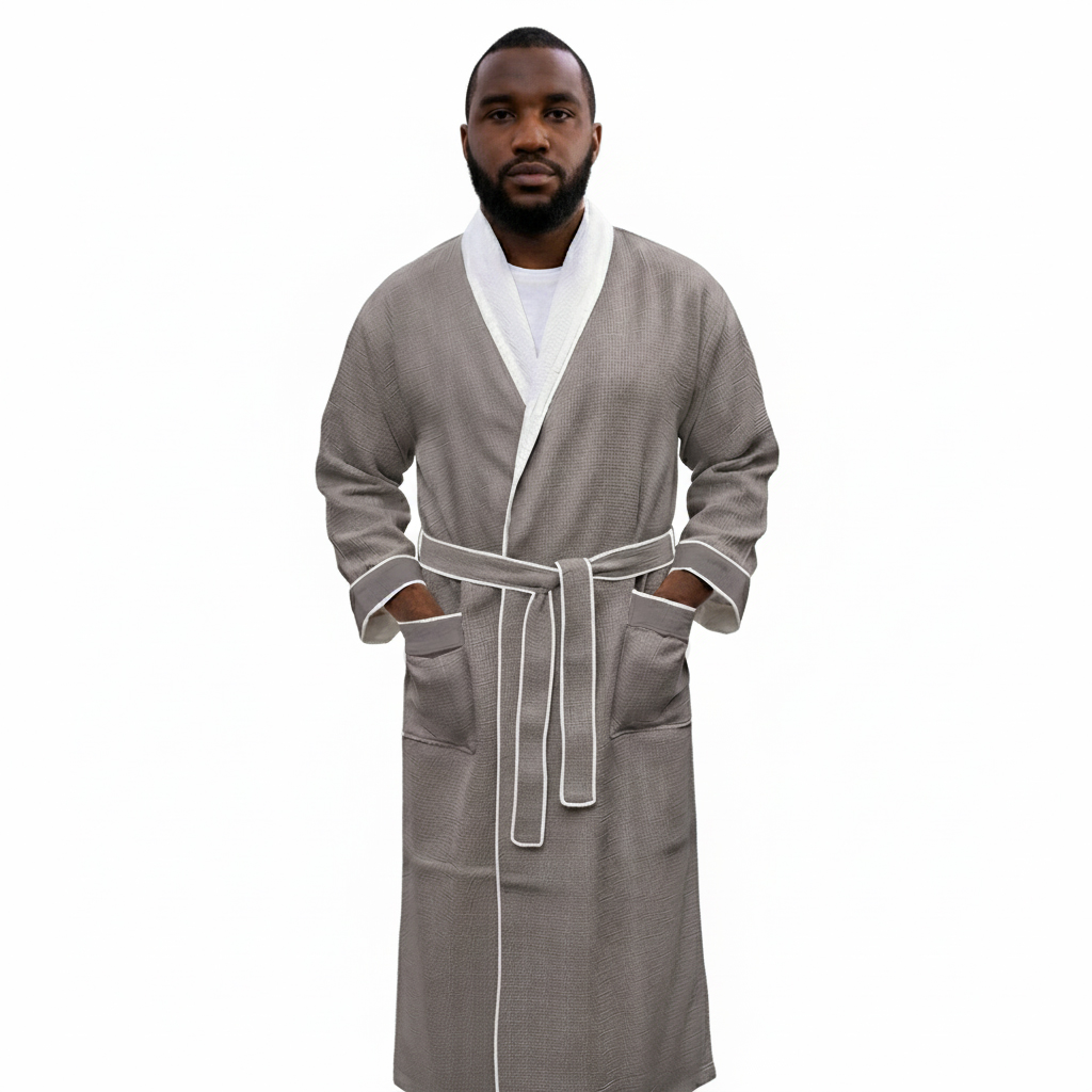 Whether you’re unwinding at home, stepping out of the shower, or enjoying a spa retreat, this bathrobe suits every occasion. Its unisex fit, classic shawl collar, and two oversized side pockets make it the perfect combination of style and practicality.