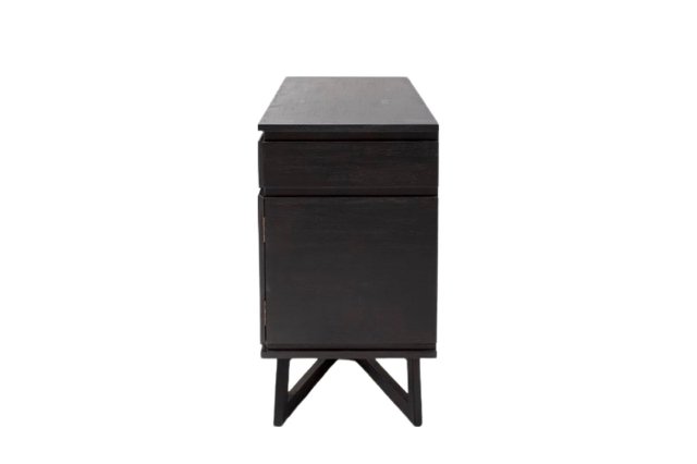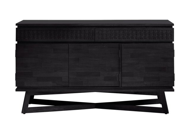 This 3 Door 2 Drawer Sideboard features a stunning matte black charcoal finish, where the different grains in the mixed timbers stand out in the light and catch your eye with this beautiful detail.