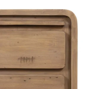 Made from mixed reclaimed woods for a natural look, soft shaping plus three spacious drawers bring both style and storage to the bedside.