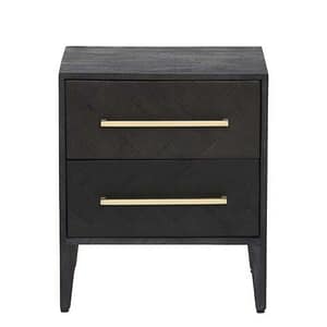 The perfect place to store away personal belongings and keep your bedroom looking clean and tidy. The Nightstand 001 is a functional and stylish item which will add a moody undertone to your space. Parquet detailed fronts and brass handles work together to create an opulent look which will suit a contemporary or traditional home. – Esorae Home Drawer Bedside in Black Wood